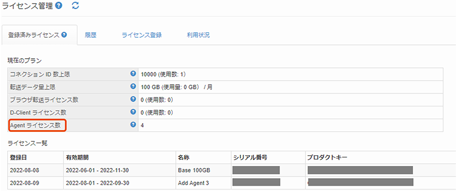 Management Console の「ライセンス管理」画⾯で、Agent ライセンス数が表⽰されるようにしました。これにより、ライセンス管理の運用負担が軽減されます。 また、Management Console で表⽰されるライセンス切れに関するエラーメッセージについて、誤解を招かないような表現に改善しました。