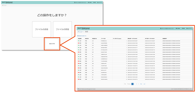ブラウザ転送実施時に、転送履歴が参照可能となりました。