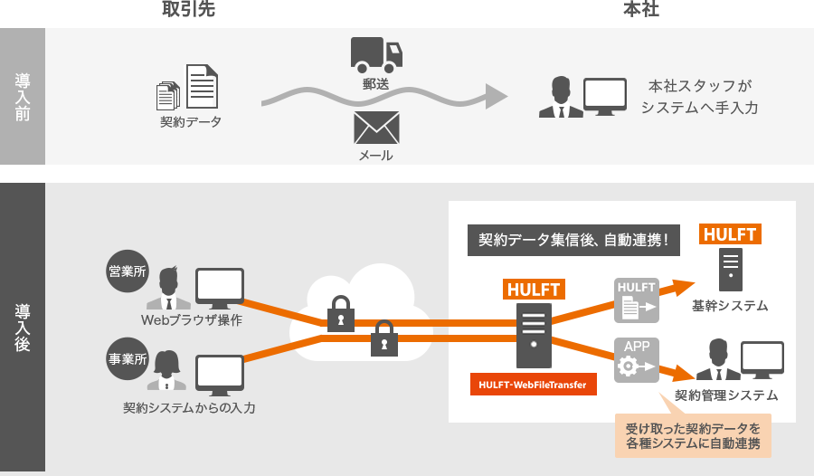 営業所や事業所から集められた契約データを基幹システムに連携する仕組みを構築し、業務効率が向上。