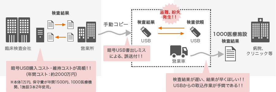 医療機関と臨床検査会社間での検査依頼・結果データ受け渡し