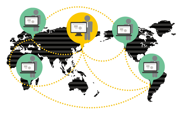 グローバル各拠点と本社システムのデータ連携を実現します。ネットワーク敷設が困難な拠点間のデータ連携に利用できます。