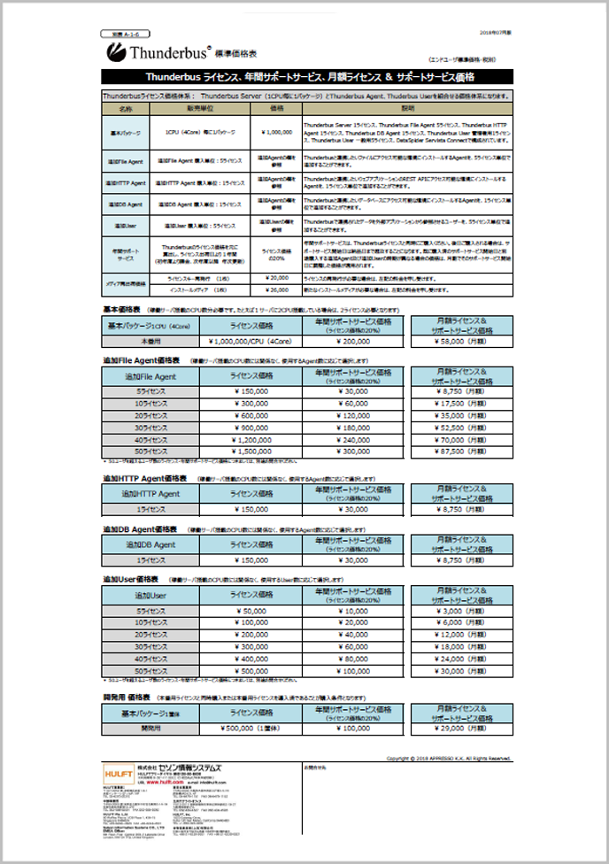 Thunderbus 製品 ライセンス価格 年間サポートサービス価格