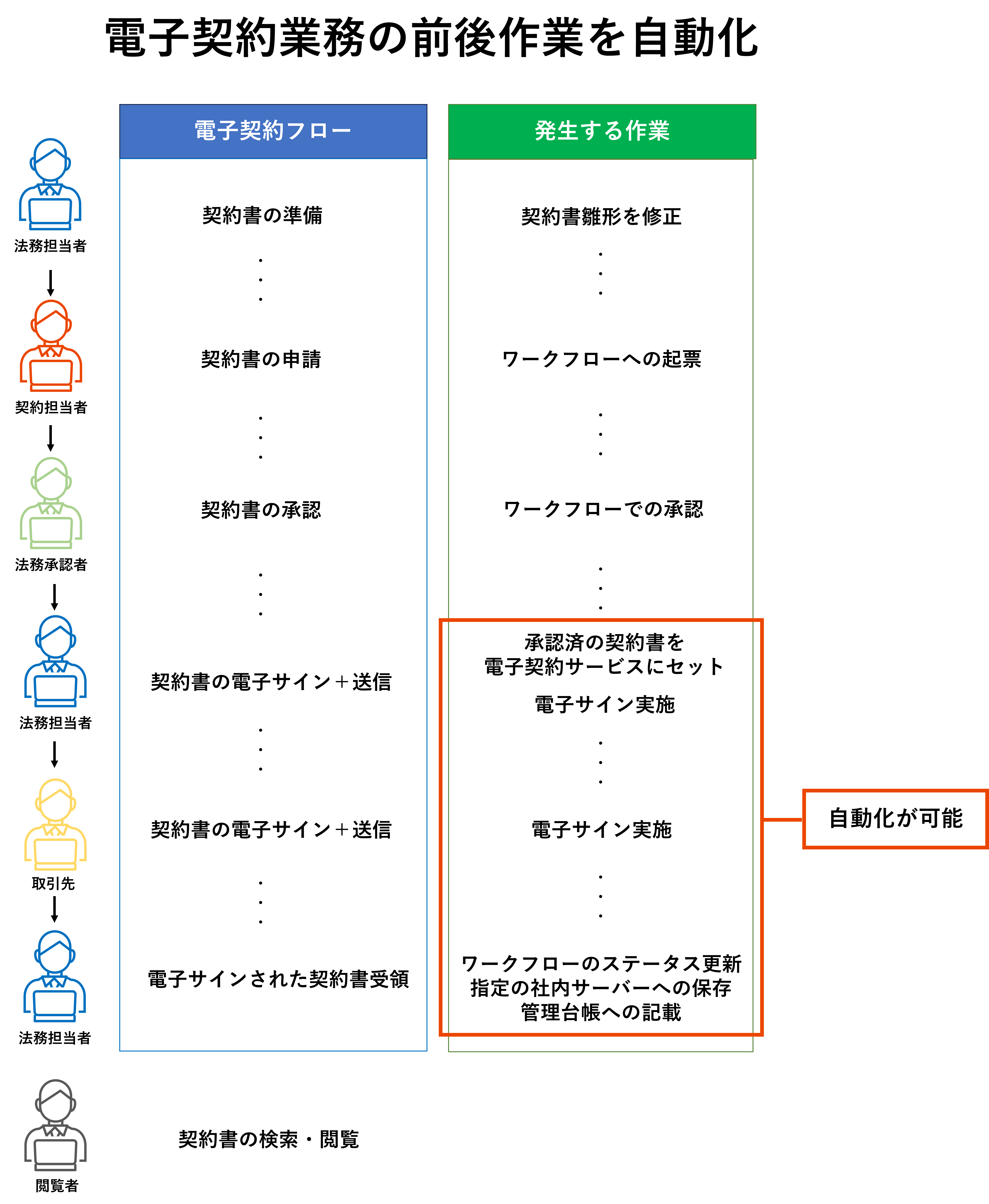 ワークフロー承認後の電子契約サービスへの契約書セットを手作業で行っている。