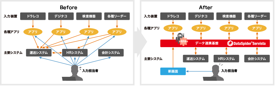 この会社も多数の業務アプリケーションを利用しており、担当者は多数の画面に別々で入力作業をしていました。こういった作業は単に手間がかかるだけではなく、入力ミスも発生しやすく、従業員のモチベーションも下がりやすいという負のスパイラルを引き起こしがちとなっていました。