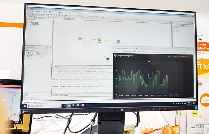 展示ブースではセンサデータがあっという間にグラフとして見える化できることを実演デモでご紹介しました。
