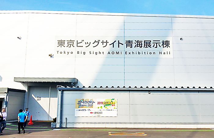 展示会は東京ビッグサイトでの開催なのですが、有名な「逆三角形の建物のあるところ」ではなく、東京オリンピックの開催に伴う仮設の展示棟での開催となりました。