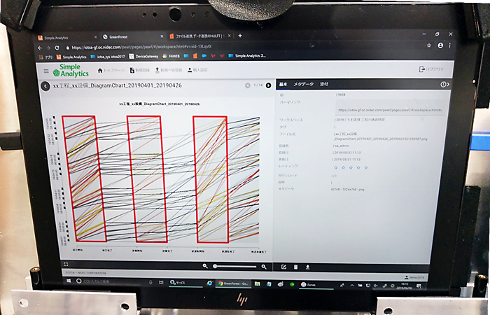 黒い箱が「Simple Analytics」の通信ゲートウェイです。これをお客様の現場のPLCに接続します。この通信ゲートウェイの設置と接続により、分析サービスのための様々なデータの収集が可能になります。