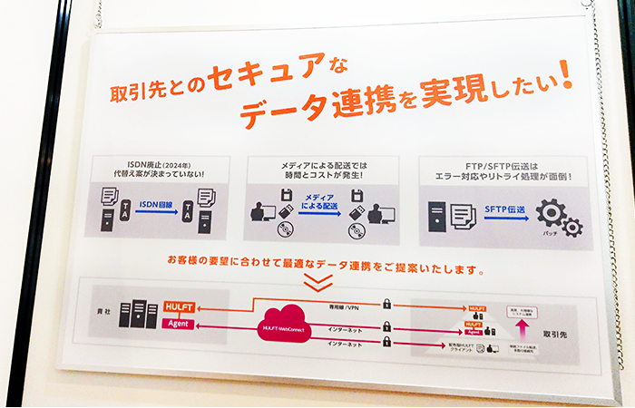 最後に紹介させていただく展示は、2024年に期限が迫っているISDN廃止の問題など、取引先とのデータ連携、「企業間でのセキュアなデータ連携」の実現についてです。