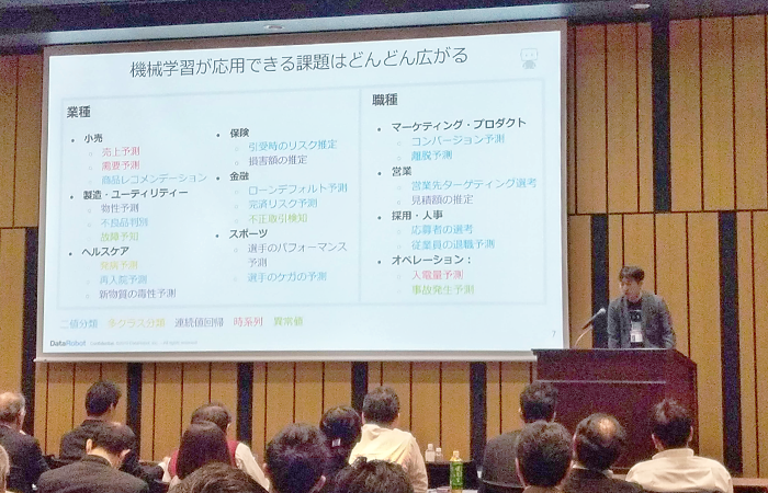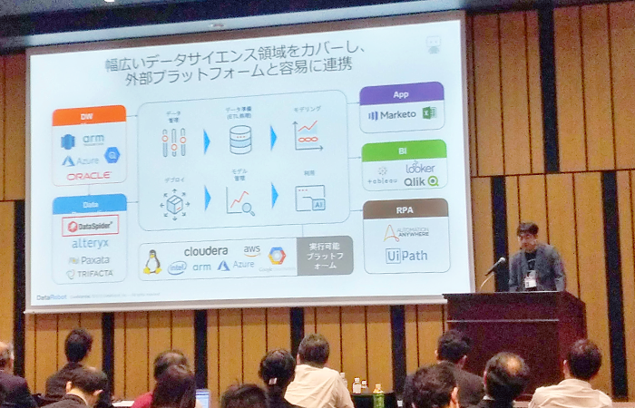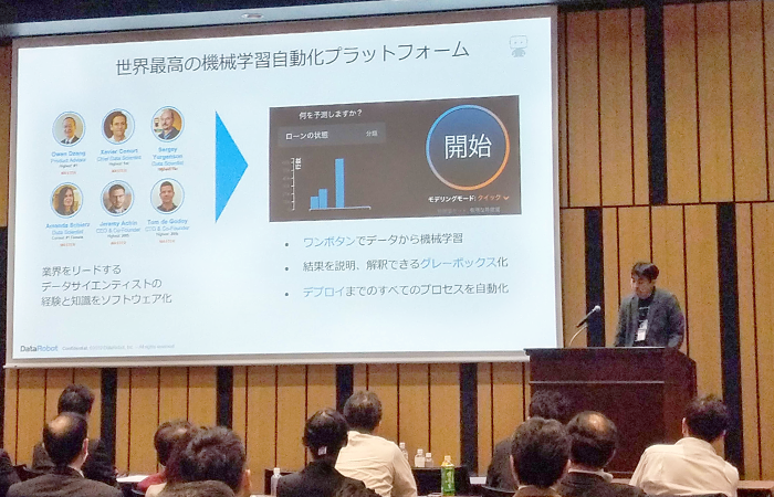 クラウドサービスとして、機械学習を自動化するプラットフォームを提供しているDataRobot社にも登壇を頂きました。