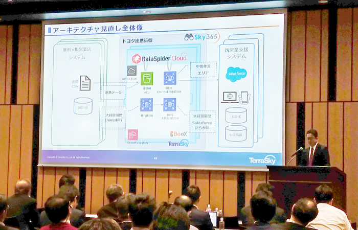 トヨタ自動車様でのDataSpider Cloudの導入事例について、導入をおこなったテラスカイ社に登壇を頂き、紹介いただきました。