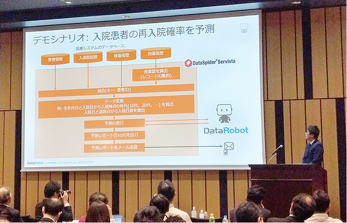 「DataRobot」と「DataSpider」を組み合わせて実際に動かすデモも行われました。