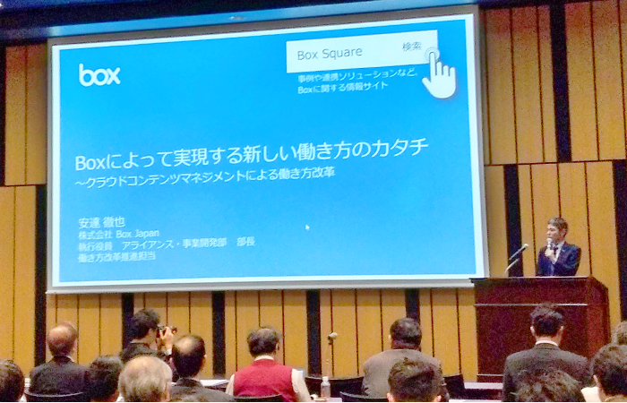 オンラインでファイルを共有するクラウドサービスを提供しているBox Japan社に登壇を頂きました。