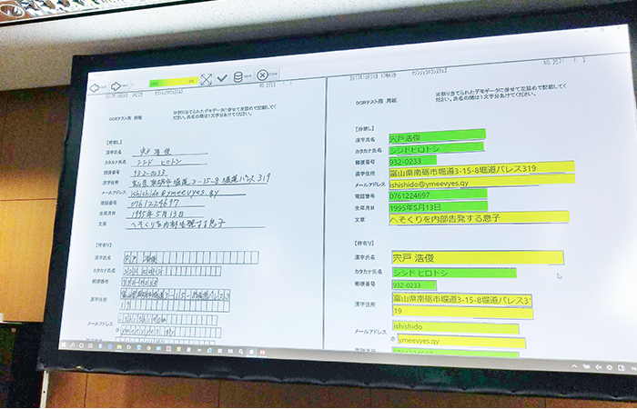 そこで、そのような場合にもOCRを活用いただけるよう、手書き帳票の読み取り処理から、お客様システムへの連携処理はもちろん、読み取り精度向上のための前処理の各種ノウハウと実現、人手による読み取り結果の照合処理の効率化のノウハウと実現などについても、弊社のプロフェッショナルがアドバイスするサービスを併せて提供することも紹介させていただきました。