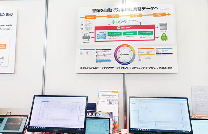 併せて展示させていただいたのは、手書き帳票のAI OCRクラウドサービスの「Tegaki」と弊社「DataSpider」を組み合わせた、手書き帳票の業務自動化ソリューションです。