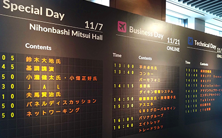 会場は空港をイメージしたデザインコンセプトで統一しております。皆さまのデータ活用が飛び立つような、あるいは皆さまのデータ活用のハブとなるような、そのような思いを込めております。