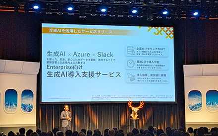 また昨今、生成 AI が大きな話題になっており、こちらの導入支援も行っています。皆さんが使い慣れていてスムーズに活用できる Slack から生成 AI を利用できるようにします。