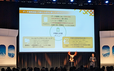 そこで提供しているのは、「つなぐ」プロダクトの提供だけではなく、データ連携基盤を内製化するにあたってどうすればよいかのコンセプトデザインサービスの提供、および内製化が出来るエンジニアを育てる技術者のトレーニングサービスです。内製化を支援するためにこれらを併せて提供しています。