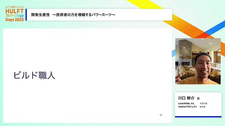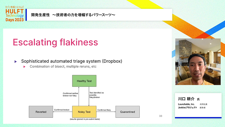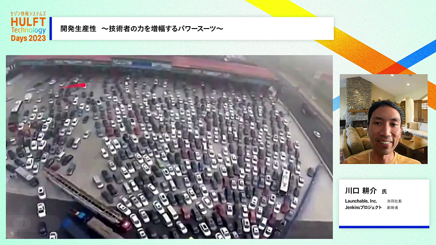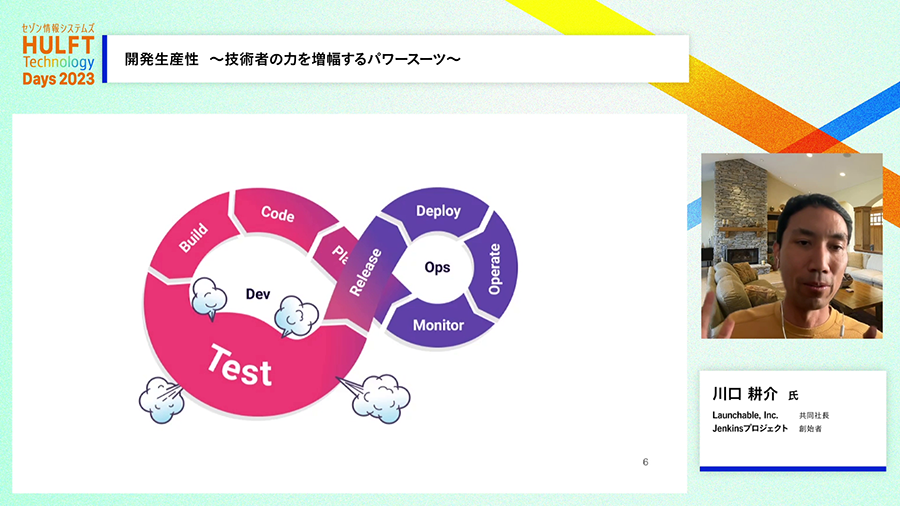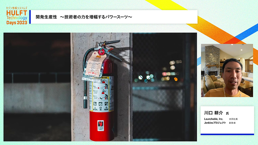 次は、ソフトウェア開発を支援するオープンソースの有名ツールJenkinsの作者である川口氏によるセッションです。テーマは開発生産性ですが、ソフトウェアの品質の話が主な話題となっています。