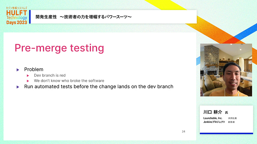 変更差分を製品のソースコードにマージする前に、変更差分だけでテストするテクニックがあります。それ単体で問題があるなら、マージするまでもなく開発者に差し戻しできます。