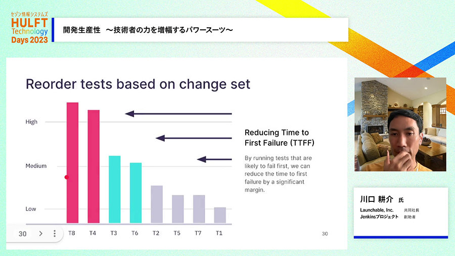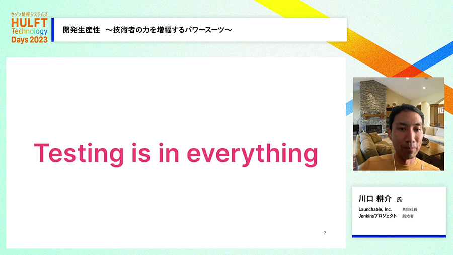 セッションでは、対処がとても厄介で開発工数の大半を実は費やしている、テスト(不具合対策)に関連する技術的な取り組みが主なテーマとなっていました。
