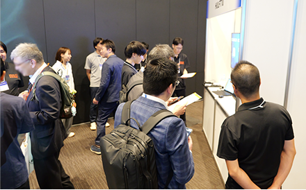 改札ゲートを進んだ先には、スポンサー企業の展示ブースが並びます。各社のソリューションや最新機能・活用方法など趣向を凝らした展示がされ、メインホールでの講演開始前や講演の合間の休憩時間などで多くの方に足を運んでいただけました。