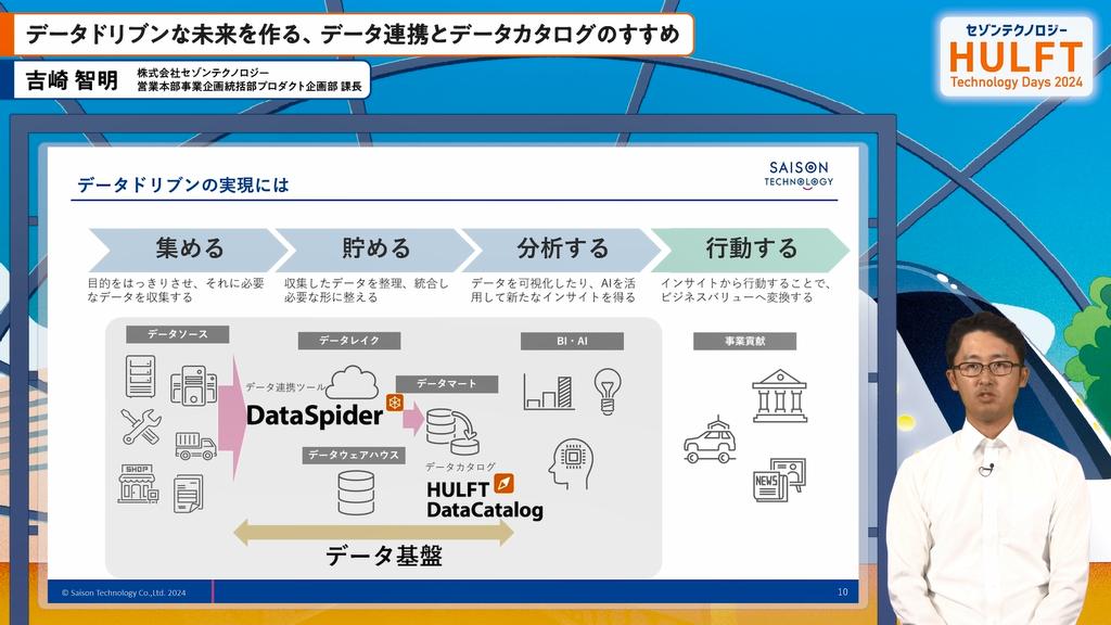 データドリブン経営の重要性は、ビジネス成功に欠かせない要素です。吉崎の講演では、データを基にした意思決定の利点を、経験則(KKD)との対比で強調しました。効率的なデータ連携手法やデータカタログの必要性を述べ、実際の企業の経験を交えて解決策を提示。データ基盤の構築が業務のスピード向上に寄与することが実例を通じて示されました。今後の進化にも期待が寄せられ、データ活用の重要性を再認識させられる内容でした。