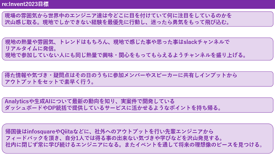 こんにちは! セゾンテクノロジー DP統括部の川口です! いよいよ来週、AWS re:Invent 2023がはじまります! わくわく、どきどき、気持ちの準備は万全です。今回は、re:Inventに向けた意気込みを紹介します!