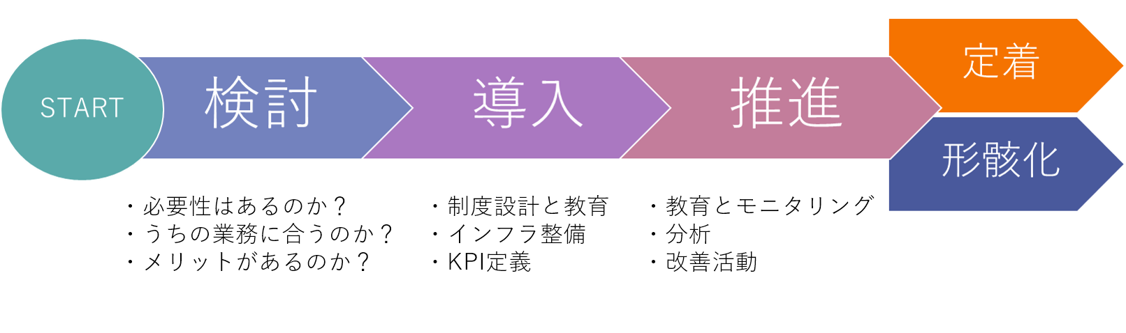 新しい制度を導入するプロセスとして粒度の違いはあれど、おおよそ以下の手順を経ていきます。