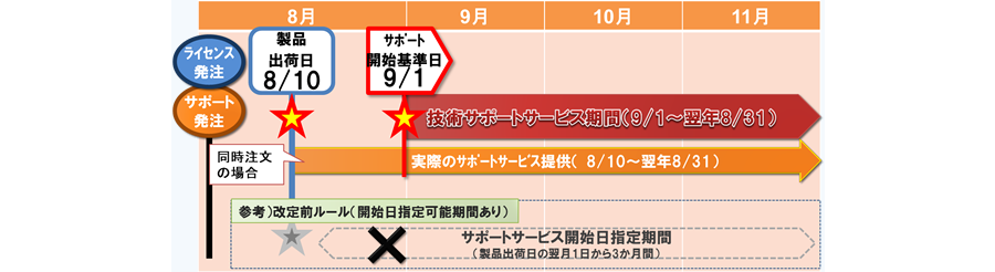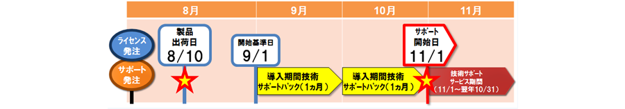 技術サポートサービス開始基準日は、サポート対象製品出荷日の翌月1日になります。