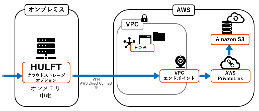 直接インターネット網に出ない形でのHULFTとAmazon S3間のデータ連携が可能となりました。