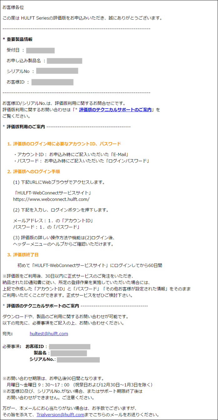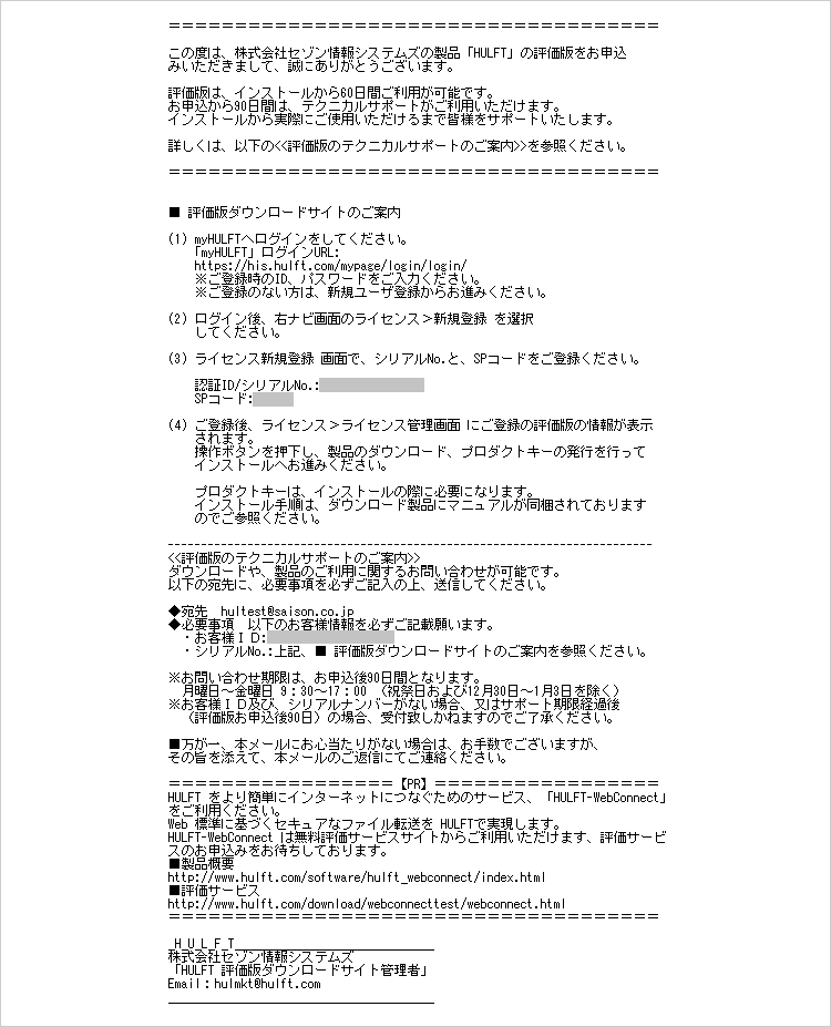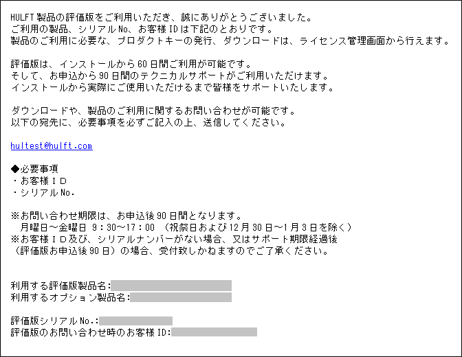 件名:[myHULFT]評価版利用開始のご案内(送信専用)