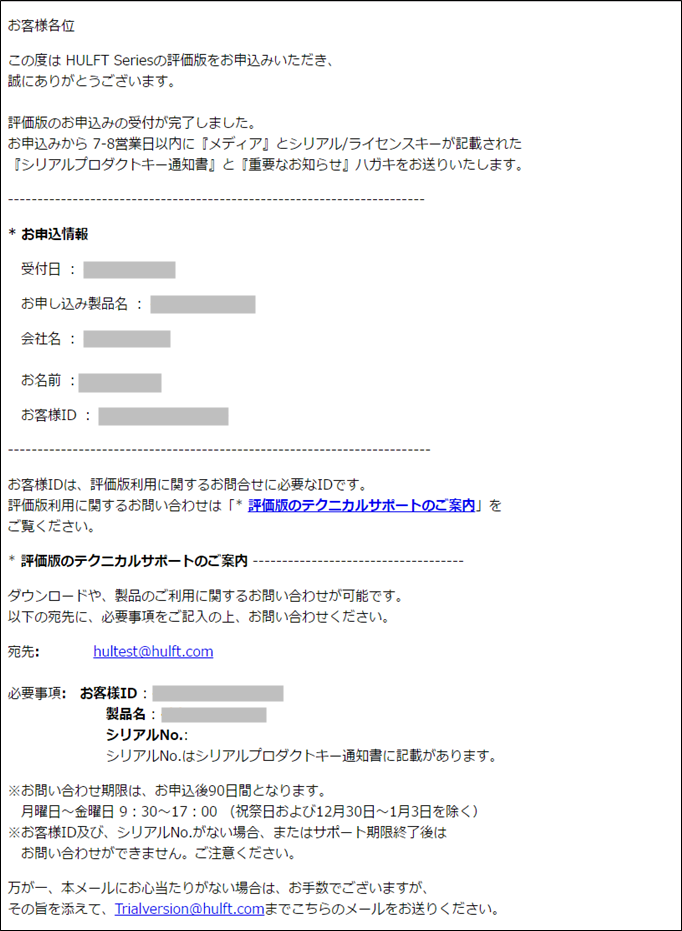 件名:【HULFT】評価版お申込み受付完了のご連絡※
